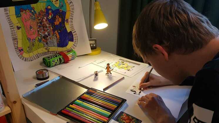 Je kunt niet 24/7 met uiltjes bezig zijn, dus voor de afwisseling werkt Nick ook regelmatig aan zijn Disneyspel. We vonden een voorbeeldspelbord online, dat heeft Nick perfect nagetekend en nu maakt hij de poppetjes voor op het bord. Daarna gaan we de opdrachtjes en vragen verzinnen bij verschillende vakjes. Nick is een grote fan van Disney. Ik zal zijn grote schilderij van een Disneykasteel ook eens posten. Het Disneyspel moet klaar zijn als Nick weer naar zijn ouders kan, wanneer dat weer is weten we nog niet. Maar het helpt Nick om ergens aan te werken voor 'straks' als hij weer net zoals vroeger ieder weekend naar de Lindelaan mag.